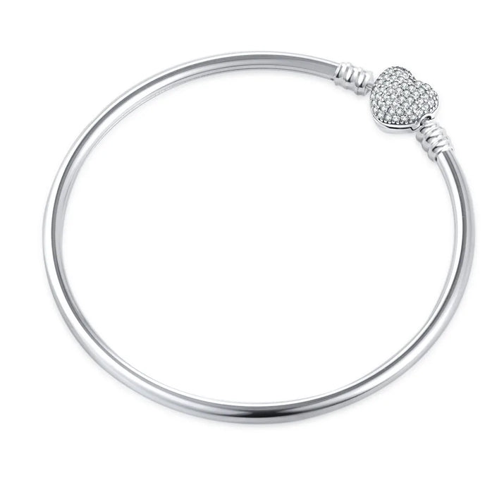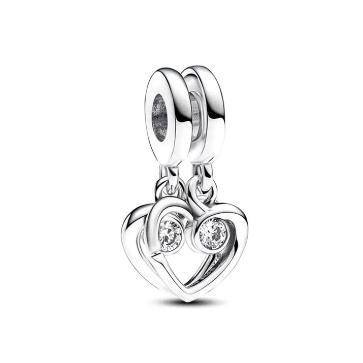 White Series Clear Stone Heart Clip Charm Fit Original 925 Sterling Silver Plated Bracelet Beads DIY Women Jewelry Gift Making